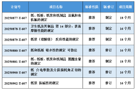 近日,國(guó)家標(biāo)準(zhǔn)化管理委員會(huì)下達(dá)2025年第三批推薦性國(guó)家標(biāo)準(zhǔn)計(jì)劃及相關(guān)標(biāo)準(zhǔn)外文版計(jì)劃的通知(國(guó)標(biāo)委發(fā)[2025] 12號(hào))。其中,《紙漿 抗堿性的測(cè)定》等7項(xiàng)造紙領(lǐng)域國(guó)家標(biāo)準(zhǔn)計(jì)劃項(xiàng)目獲批立項(xiàng),具體如下所示。