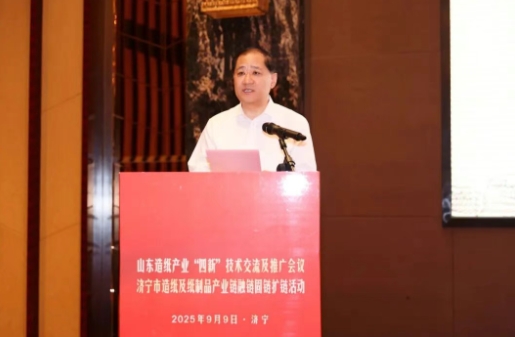 9月8日-10日,2025山東造紙產(chǎn)業(yè)“四新”技術(shù)交流及推廣會(huì)議暨濟(jì)寧市造紙及紙制品產(chǎn)業(yè)鏈融鏈固鏈擴(kuò)鏈活動(dòng)在濟(jì)寧市兗州區(qū)成功舉辦。本次會(huì)議是山東省工信廳“新輕紡享生活”輕工紡織產(chǎn)業(yè)“新質(zhì)生產(chǎn)力提升年”活動(dòng)組成之一,由山東省造紙行業(yè)協(xié)會(huì)、山東造紙學(xué)會(huì)、山東太陽(yáng)紙業(yè)股份有限公司和濟(jì)寧市造紙及紙制品產(chǎn)業(yè)鏈專班主辦,主題為“推進(jìn)技術(shù)進(jìn)步引領(lǐng)產(chǎn)業(yè)升級(jí)”。 大會(huì)開(kāi)幕式由中國(guó)造紙協(xié)會(huì)副理事長(zhǎng)、山東造紙學(xué)會(huì)副理事長(zhǎng)、山東造紙協(xié)會(huì)專職副會(huì)長(zhǎng)趙振東主持,中國(guó)制漿造紙?jiān)嚎偣ぁ⒅袊?guó)造紙學(xué)會(huì)特種紙專委會(huì)秘書(shū)長(zhǎng)劉文作《中國(guó)特種紙現(xiàn)狀及發(fā)展趨勢(shì)》報(bào)告,齊魯工業(yè)大學(xué)黨委副書(shū)記、山東造紙學(xué)會(huì)理事長(zhǎng)劉玉作《加力培育新質(zhì)生產(chǎn)力推進(jìn)綠色低碳高質(zhì)量發(fā)展》主旨講話,濟(jì)寧市委常委、秘書(shū)長(zhǎng)、一級(jí)巡視員董波,兗州區(qū)委書(shū)記王慶,濟(jì)寧市生態(tài)環(huán)境局黨組書(shū)記、局長(zhǎng)張繁翔,太陽(yáng)紙業(yè)黨委書(shū)記、山東省造紙行業(yè)協(xié)會(huì)會(huì)長(zhǎng)李洪信,太陽(yáng)紙業(yè)董事長(zhǎng)李娜等領(lǐng)導(dǎo)出席會(huì)議。