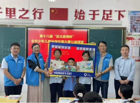 此前的9月18日,該團隊曾到五蓮縣松柏鎮(zhèn)中心學(xué)校開展第十八屆“亞太森博杯”全市少年兒童環(huán)保繪畫大賽啟動儀式。