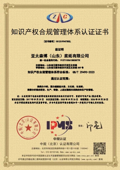 在為期3天的嚴格評審中,公司知識產權管理體系憑借持續穩定的運行質量、規范高效的流程管控,順利通過審核,不僅未發現任何不符合項,更成功實現文化紙、生活紙、萊賽爾纖維三大業務領域的審核擴項,同步完成 GB/T 29490-2023新標準的換版工作,彰顯了企業在知識產權管理領域的深厚積淀與創新活力。
