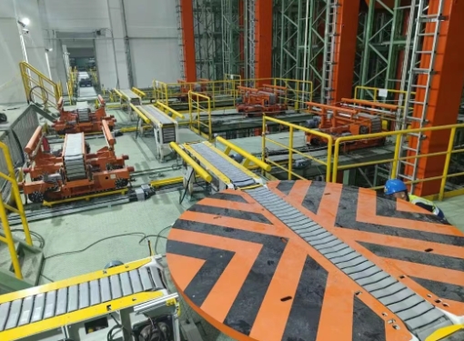 ▲卷筒入庫輸送設(shè)備調(diào)試