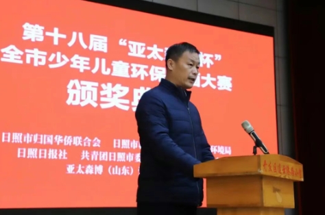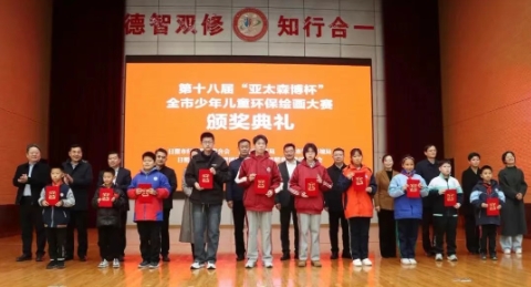 12月6日,第十八屆“亞太森博杯”全市少年兒童環保繪畫大賽頒獎典禮在日照經濟技術開發區連云港路小學舉行。市政協副主席惠旻出席并致辭,市僑聯黨組書記、主席宋強主持,市教育局黨組成員、副局長張穎宣讀獲獎名單,市生態環境局、日照日報社、共青團日照市委、市科協、日照經開區及公司有關負責人,獲獎學生、優秀輔導老師、優秀組織工作者、優秀組織單位代表及部分家長等800余人參加了活動。