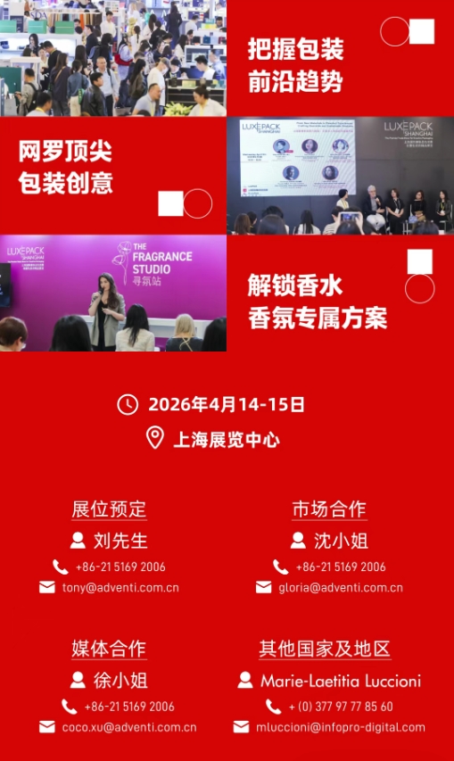 洞察全球包裝趨勢,把握奢侈品市場先機,直面亞洲一流品牌的決策層、國際設計大師、全球尖端包裝制造商。