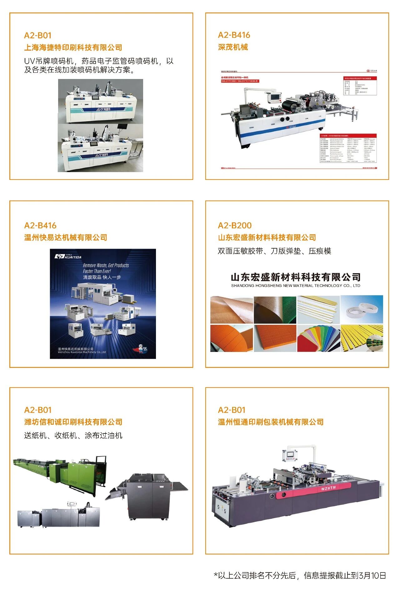 ·智能包裝機械:模切機、糊盒機、裱紙機、燙金機、激光切割機、貼窗機、上膠機、紙袋加工設備、膠盒加工設備、紙面處理設備、紙杯/紙盒自動生產線、噴膠系統、編碼和識別系統。