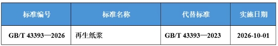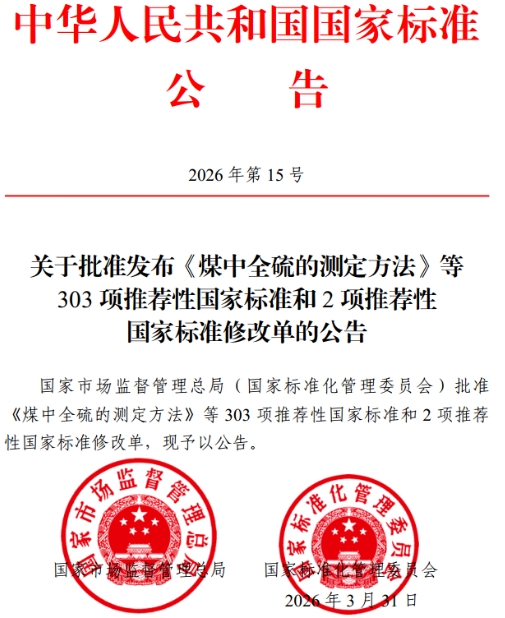 近日,國家市場監督管理總局(國家標準化管理委員會)發布2026年第15號公告,批準發布《煤中全硫的測定方法》等303項推薦性國家標準和2項推薦性國家標準修改單,其中包括造紙領域國家標準《再生紙漿》,具體信息如下。