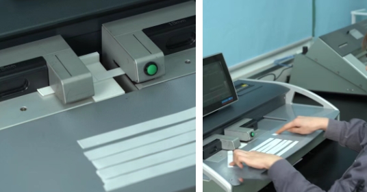 具體步驟: 將已測定定量、厚度、不透明度的紙頁5張重疊,用抗張強(qiáng)度儀專用切紙刀裁取試樣,確保每張?jiān)嚇硬萌?條,確保試樣無起皺等異常。