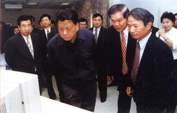 2001年4月27日國(guó)務(wù)院委員、國(guó)務(wù)院秘書長(zhǎng)王忠禹視察金東