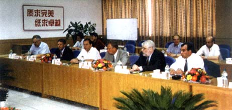 考察期間,公司馬志明副總經理向客人們介紹了公司的情況,并帶領客人們實地參觀了紙機車間、涂布機車間。