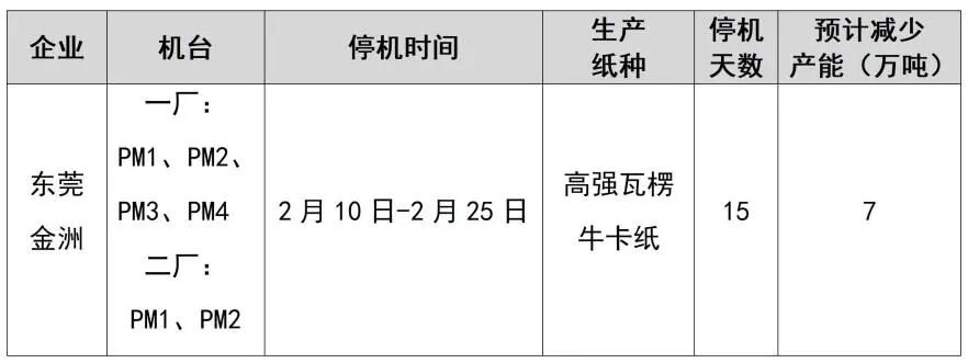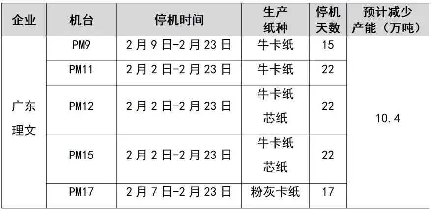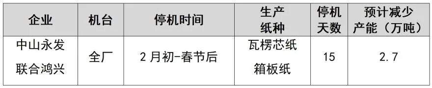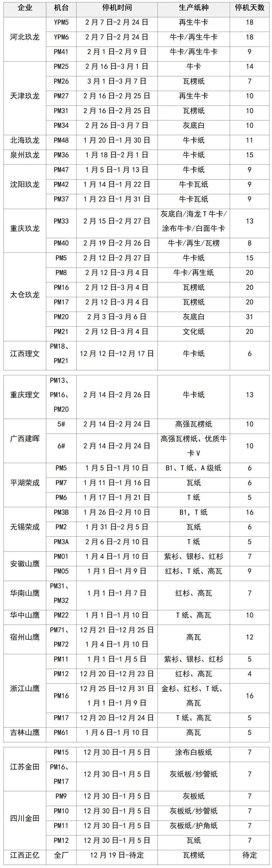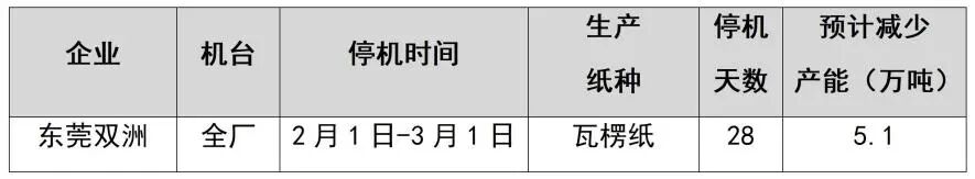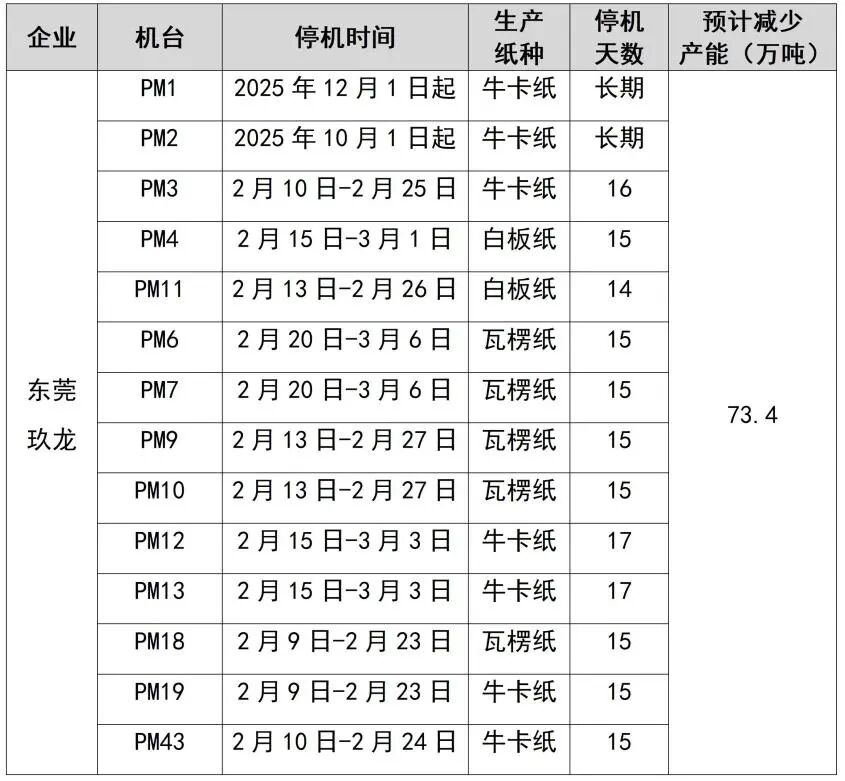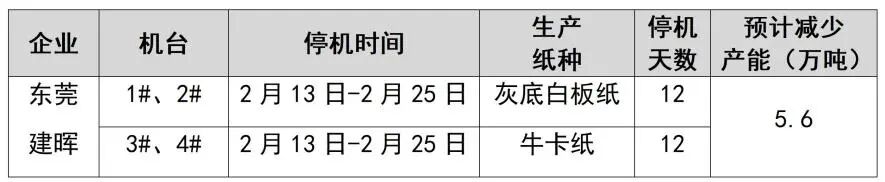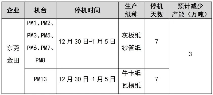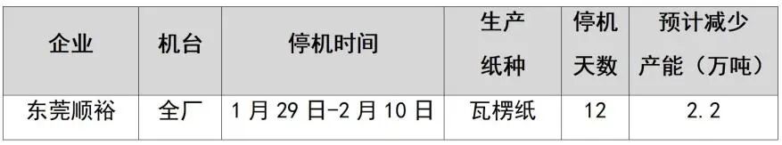 紙廠停機計劃匯總(2026-01-13)