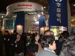 嘉賓在參展企業(yè)前參觀,并與企業(yè)人員交流
